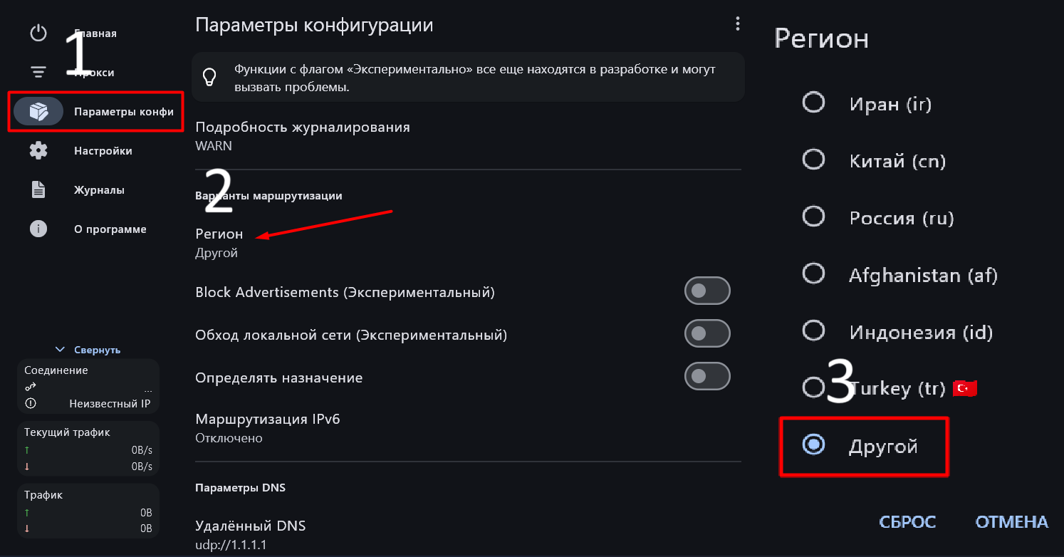Обратите внимание, по стандарту в приложение выбран режим ПРОКСИ и впн будет работать только на ОСНОВНОЙ БРАУЗЕР!