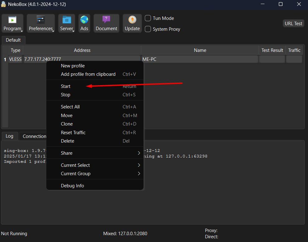 Распаковываете его в любое удобное место и запускаете файл nekobox.exe